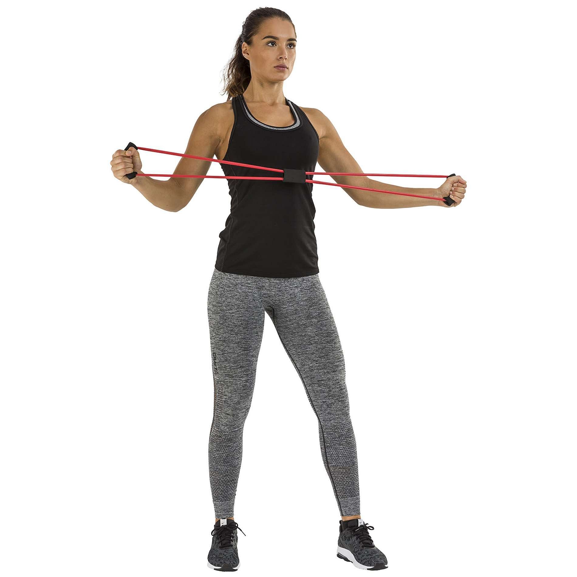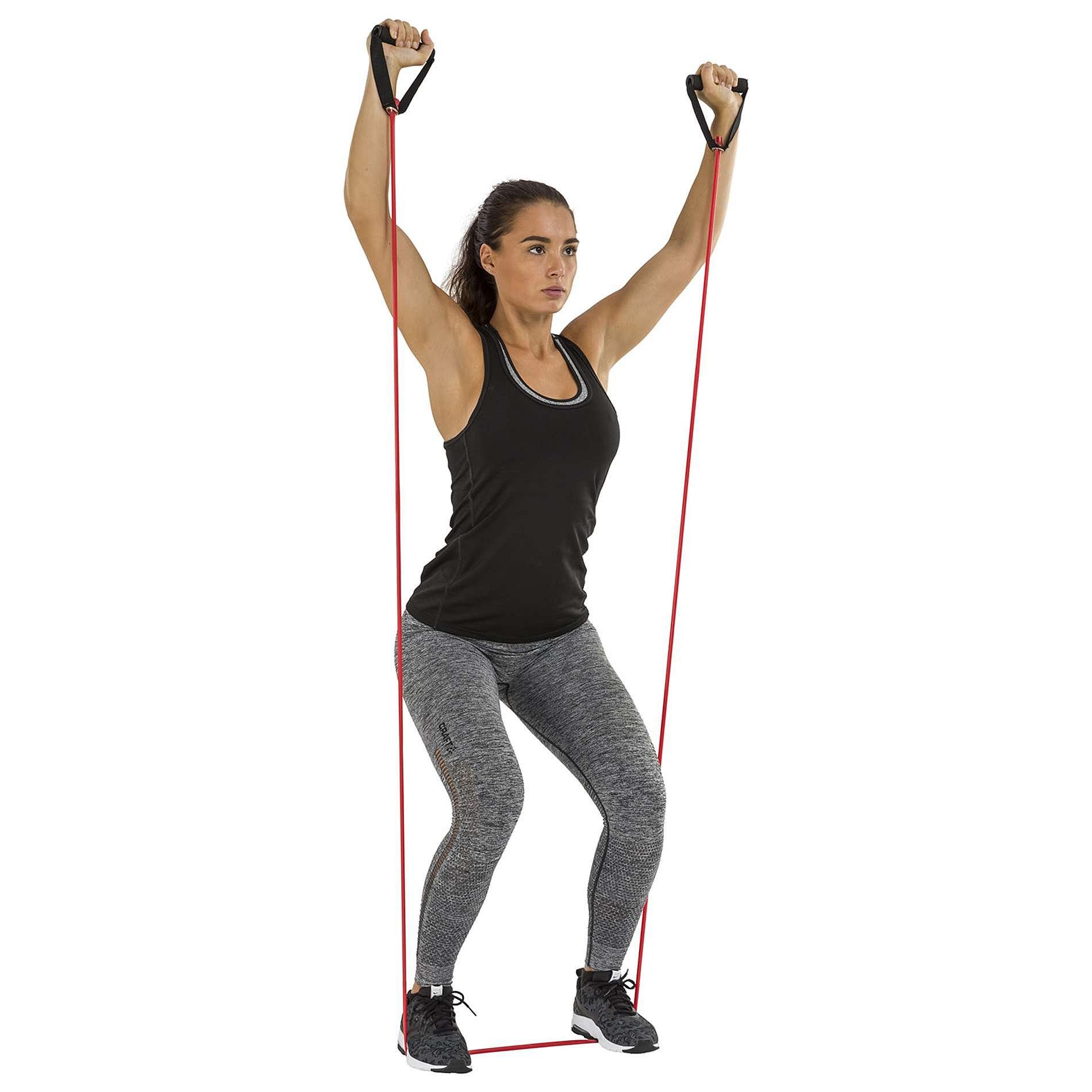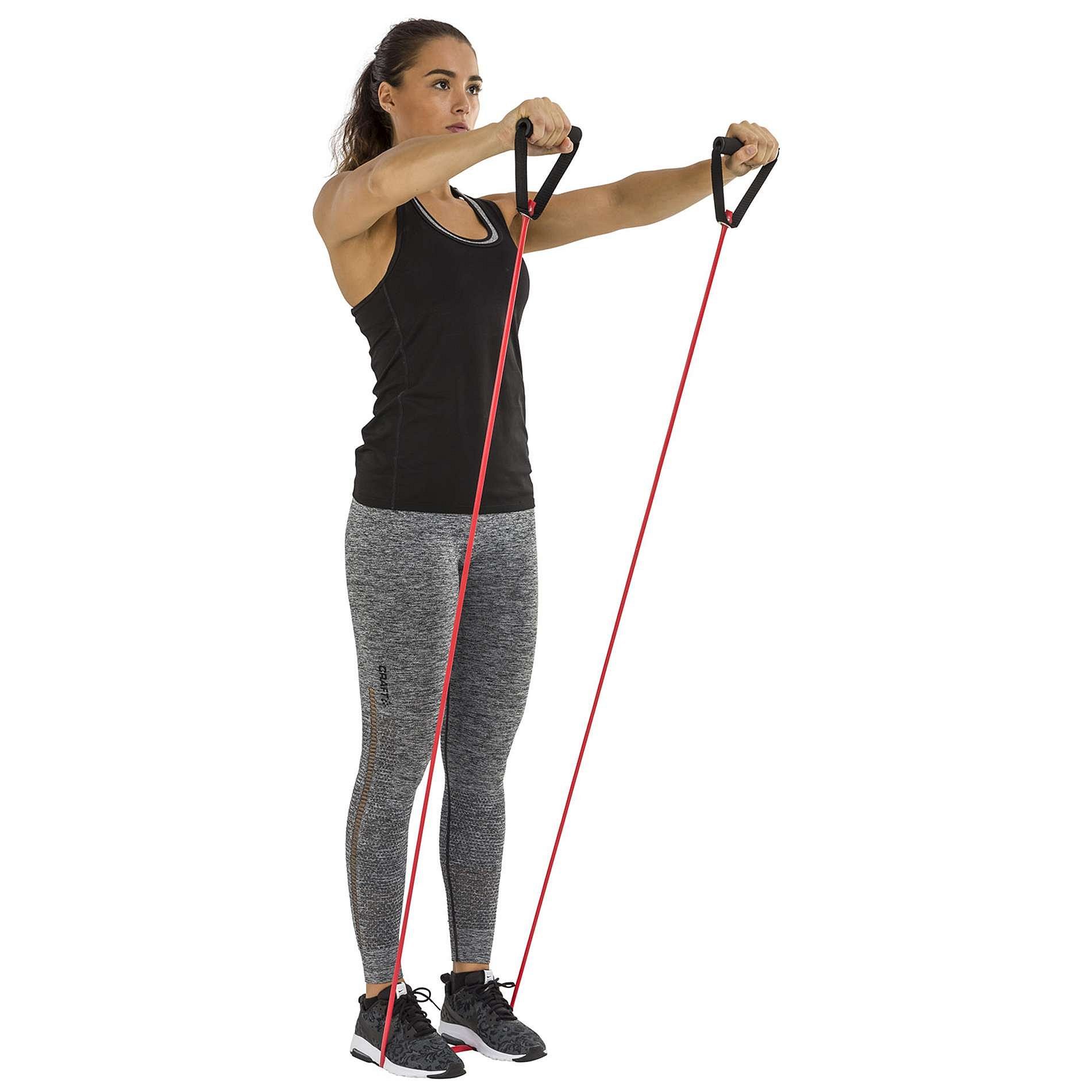 Představujeme vám tento všestranný fitness doplněk Tunturi: Tubing s držadly! Sada obsahující 3 různé modely tubingů s mírným odporem. Sadu lze použít pro trénink svalů paží, hrudníku a ramen. Cviky, jako je bicepsové zkracování, zvedání ramen a tricepsové extenze, abychom jmenovali alespoň několik příkladů. Svaly nohou můžete posílit prováděním výpadů nad hlavu nebo dřepů nad hlavou. Sada trubek se snadno přenáší. Trénujte doma, v parku, v posilovně nebo na pláži. K dispozici také se středním a těžkým odporem.