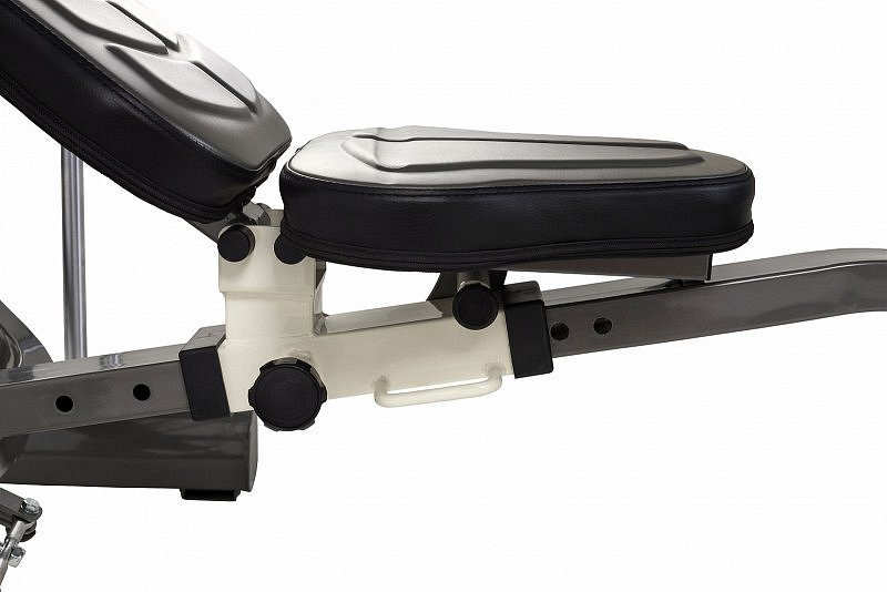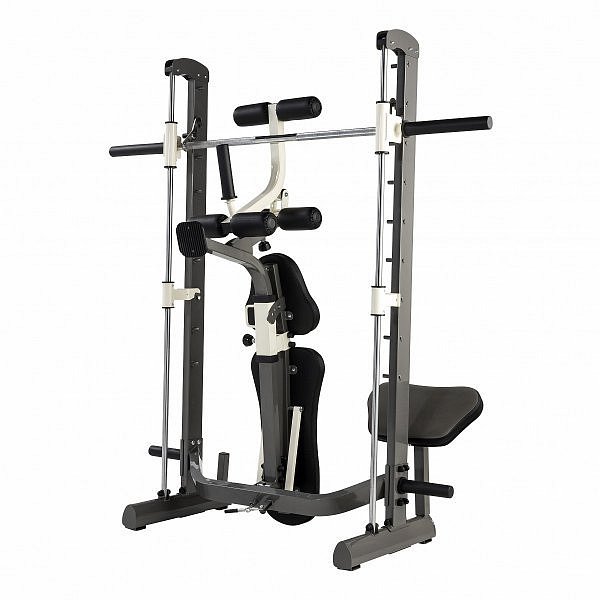 Lavice TUNTURI PURE COMPACT SMITH je kvalitní lavice, vhodná pro všechny základní cviky s činkami či vzpěračkou tyčí. Robustní ocelová konstrukce zaručuje vysokou stabilitu i celkovou nosnost 150kg. Úspora prostoru díky jednoduchému skládacímu systému. Multifunkční lavice nabízí především propracovanou vzpěračkou část, která je navržena tak, aby umožnila přirozený pohyb nahoru a dolů, pomocí dvou chromových hladkých vodících tyčí. Tento systém je znám také u tzv. "Smithových" lavic. Funkce Active Balance pak umožňuje snadno a rychle, během vteřiny usadit tyč do stojanu. Samozřejmostí je i možnost natavení zarážek, které zabrání případnému upuštění činky při bench pressu. Ergonomicky navrženy 3 polohy sedáku a 7 pozic opěrky zad. Součástí lavice je bicepsový pult s výškovým nastavením a adaptér pro předkopávání a zakopávání s nástavcem pro olympijské kotouče. Komfortní polstrování, anatomická opěrka, 4 pozice nastavení opěrky a trny pro 50 mm olympijské kotouče patří mezi další přednosti lavice. Stojan je opatřen trny pro odložení kotoučů.