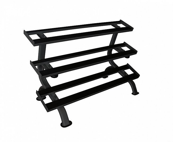 Třípatrový odkládací stojan na jednoruční činky