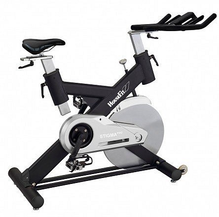HOUSEFIT STIGMA PRO je vynikající spinningové kolo pro náročný trénink v domácím i komerčním prostředí. Rám je tvořen speciálnímy profily, rotační části jsou osazeny průmyslovými ložisky. Plynulost chodu zajišťuje sertvačník o váze 20 kg s řemenovým převodem o poměru 1:3, osazeným bezpečnostním krytem. Manuálně ovládaný brzdový systém je mechanický-třecí s bezpečnostní pojistkou pro okamžité zastavení setrvačníku. Trenažér nemá volnoběžný chod.Pedály i sedlo mají standardní osazení, lze je tedy vyměnit za jakékoli cyklistické. Kliky jsou osazeny klipsnami.