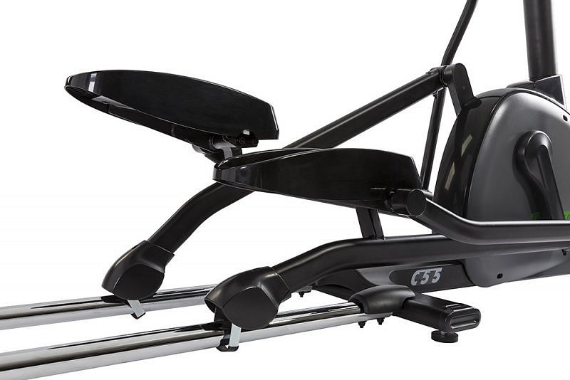 Eliptický trenažér TUNTURI Performance C55 F se setrvačníkem v přední části stroje nabízí zákazníkům kombinaci kvalitní mechaniky a ergonomie rámu s nosností až do 135 kg. Stroj disponuje standardně dlouhým krokem o délce 50 cm a díky optimální ergonomii je zaručen pohodlný a správný pohyb jak drobným, tak vyšším postavám. Stabilní a masivní konstrukce spolu s kvalitními komponenty zaručuje dlouhou životnost stroje a předurčuje model pro pravidelný trénink.