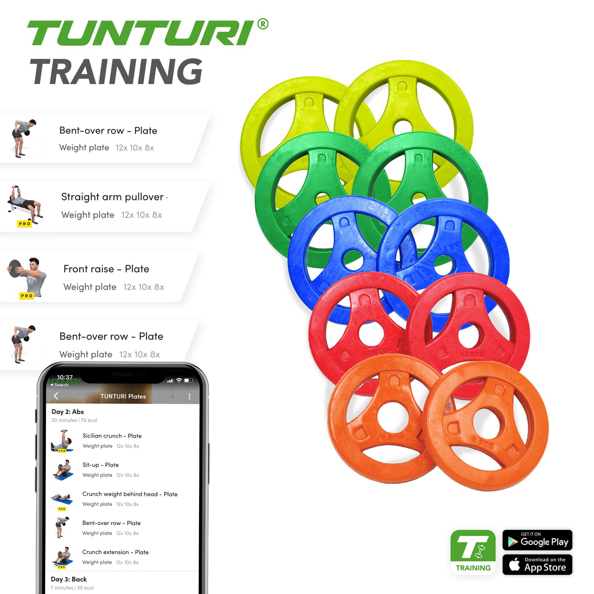 Tyto zátěžové desky Tunturi Aerobic nesmí chybět v žádné posilovně. Zkombinujte je s různými těžšími talíři, dobrou vzpěračskou tyčí a voilà, máte vynikající vzpěračskou sadu pro posílení vašeho těla. Těžší talíře mají jinou barvu, takže můžete snadno oddělit posilovací talíře. Jedná se o trojúchopové zátěžové desky, které lze díky úchytům použít pro všechny druhy cviků. Aerobní zátěžové desky jsou vyrobeny z litiny a jsou opatřeny ochrannou gumovou vrstvou. Díky tomu činky pohodlně padnou do ruky a při cvičení jsou méně hlučné.