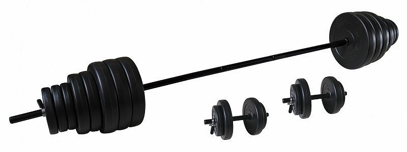 Tunturi nakládací činkový set o celkové hmotnosti 50 kg. Díky této universální sadě budete moci posilovat všechny svaly horní poloviny těla. Sada obsahuje 1x dlouhou nakládací tyč (152cm), 2x krátkou nakládací tyč (36cm), 6x bezpečnostní klip, kotouče potažené vinylem: 6x 5kg, 4x 2,5kg a 6x 1,25kg