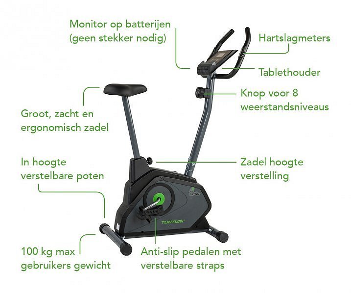 Rotoped TUNTURI Cardio Fit B30 Bike patří do kategorie levnějších rotopedů, ale jeho mechanické provedení, výbava a šlapací vlastnosti jsou v dané cenové relaci na velice solidní úrovni. Rotoped miskový šlapací střed, dopínaným řemenem s s kladkou magnetický brzdný systém ovládaný manuálně. Šlapání na něm je právě díky magnetickému brzdnému systému a kvalitní mechanice naprosto tiché. Stroj je určen pro velice nenáročné domácí využití, setrvačník o hmotností 3 kg, který zaručuje relativně plynulý chod rotopedu. Odpor je řízený manuálním regulátorem v 8-mi stupních od nuly až do maxima. Masivní rám nabízí nosnost 100 kg, sedlo je vertikálně posuvné podle vašich tělesných parametrů. Trenažér má bezpečnostní volnoběh.