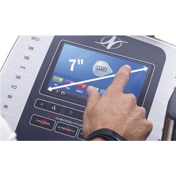 Počítač má multifunkční grafický dotykový displej s držákem na tablet, který se snadno ovládá a zobrazuje všechny běžné hodnoty. Vyobrazené parametry na displeji jsou: čas, rychlost, vzdálenost, spotřeba (Kcal), otáček/min., puls, zátěže ve Wattech, zobrazení zátěže. Tepová frekvence je snímána přes dlaňové snímače (hand pulsy).