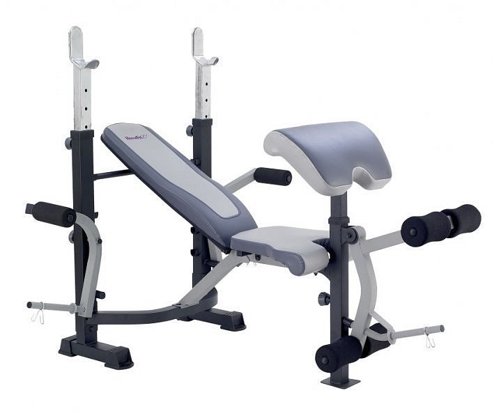 Posilovací lavice se stojanem HOUSEFIT HG - 2085 pro domácí posilovací trénink, se skládá z polohovací lavice a stojanu na dlouhou hřídel. Tyto dva komponenty jsou k sobě pevně spojeny. Součástí je bicepsová opěrka s možností nastavení výšky. Lavice umožňuje nastavení záporného úhlu. Stojan je vybaven adaptéry na cvičení peckdeck ( butterfly ).Tato lavice je určena pro domácí cvičení a začátečníky.