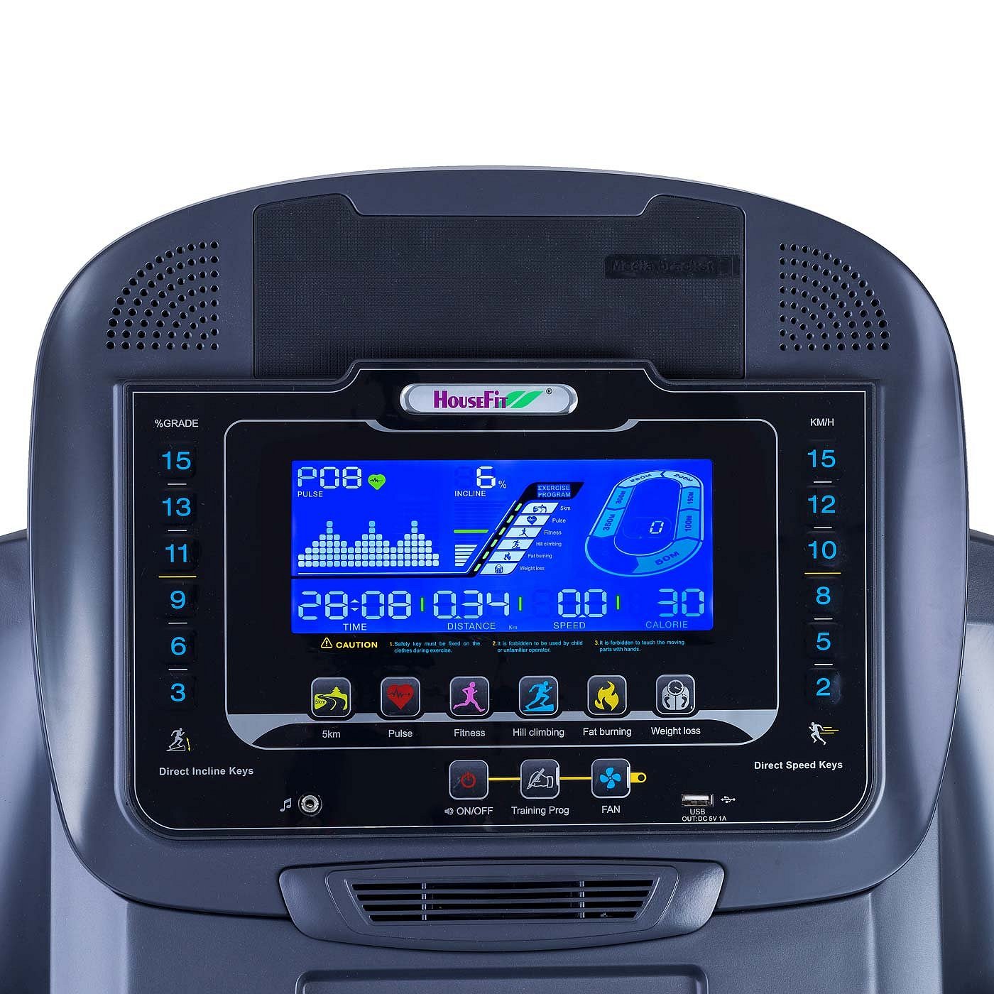 Svůj trénink na běžeckém trenažéru HOUSEFIT SPIRO 80 iRun budete mít pod kontrolou prostřednictvím tréninkového počítače s přehledným podsvětleným LCD displejem a řadou programů. Ať už využijete automatické cvičební programy, nebo si zátěž budete dávkovat ručně, zobrazované hodnoty vám umožní přizpůsobit svůj trénink vaší aktuální kondici a cílům.