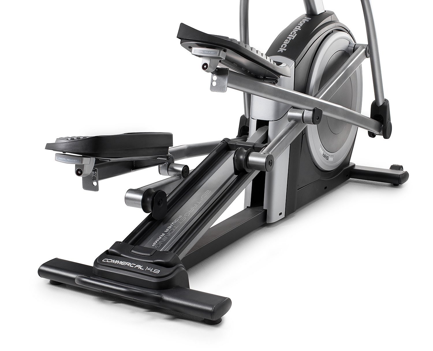 Eliptický trenažér NORDICTRACK Commercial 14.9 patří k aktuálně vrcholnému modelu eliptických trenažérů tohoto výrobce. Nabízí setrvačník v přední části stroje nabízí zákazníkům kombinaci kvalitní mechaniky a ergonomie rámu s nosností do 135 kg. Disponuje komfortně nastavitelně dlouhým krokem o délce 45-51 cm a roztečí nášlapů 5 cm. Díky optimální ergonomii je zaručen pohodlný a správný pohyb jak drobným, tak vyšším postavám. Stabilní a masivní konstrukce spolu s kvalitními komponenty prodlužuje životnost stroje i při využití těžšími osobami a předurčuje model i pro pravidelný sportovnější trénink.
