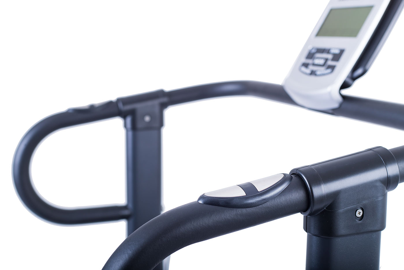 • měření tepové frekvence senzory na madlech, nebo bezdrátově hrudním pásem (pás lze případně dokoupit, není součástí stroje)