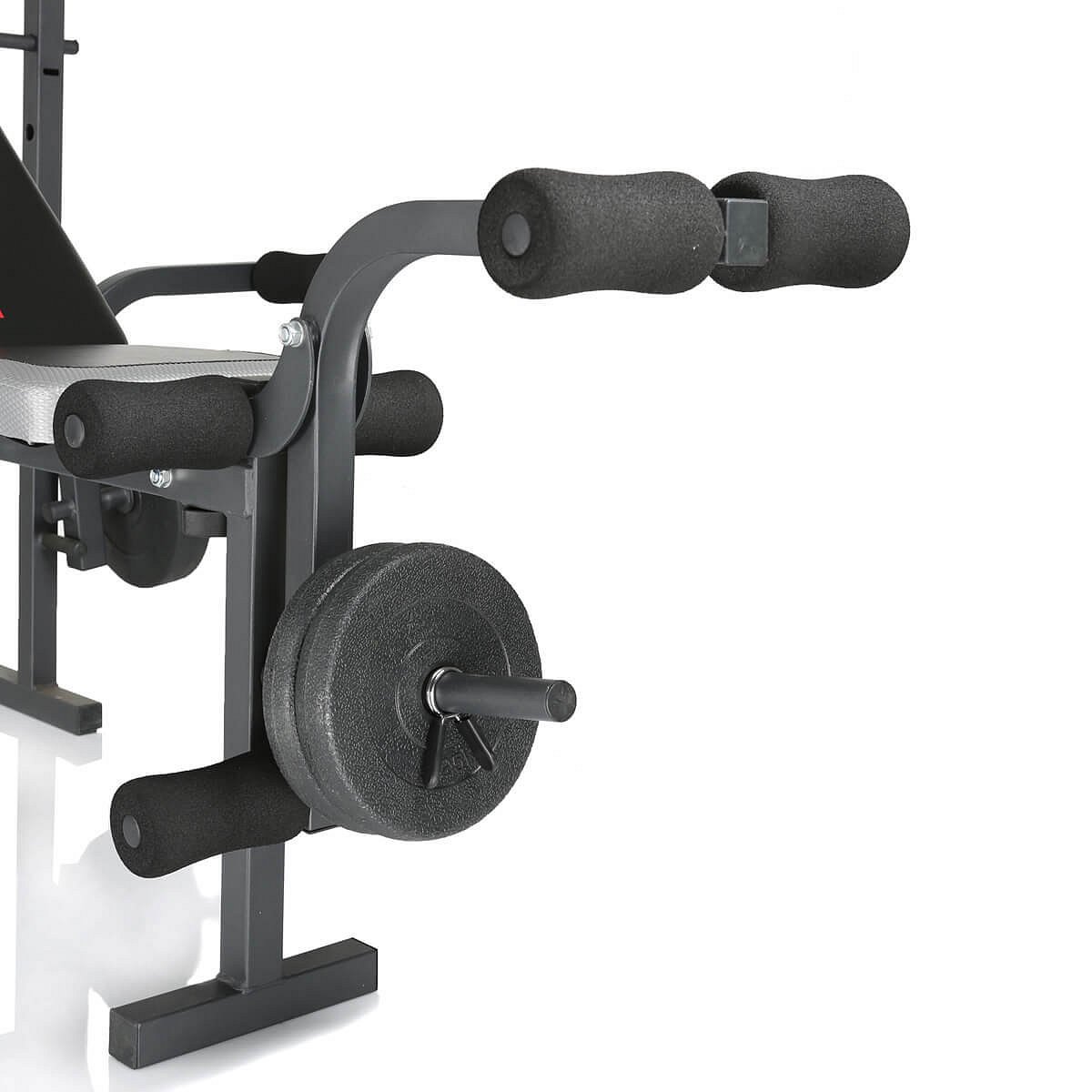 Posilovací lavice má stabilní ocelový rám s práškovým lakováním odolným proti poškrábání. Nosnost kompletní konstrukce je 130 kg a to včetně hmotnosti uživatele, adaptér předkopávání je do 40 kg, rozpažování do 30 kg a stojan na činku do 55 kg. Polohovatelná zádová opěrka je nastavitelná ve 4 pozicích. Rámová konstrukce má čtvercový průměr 38 x 38 mm.
