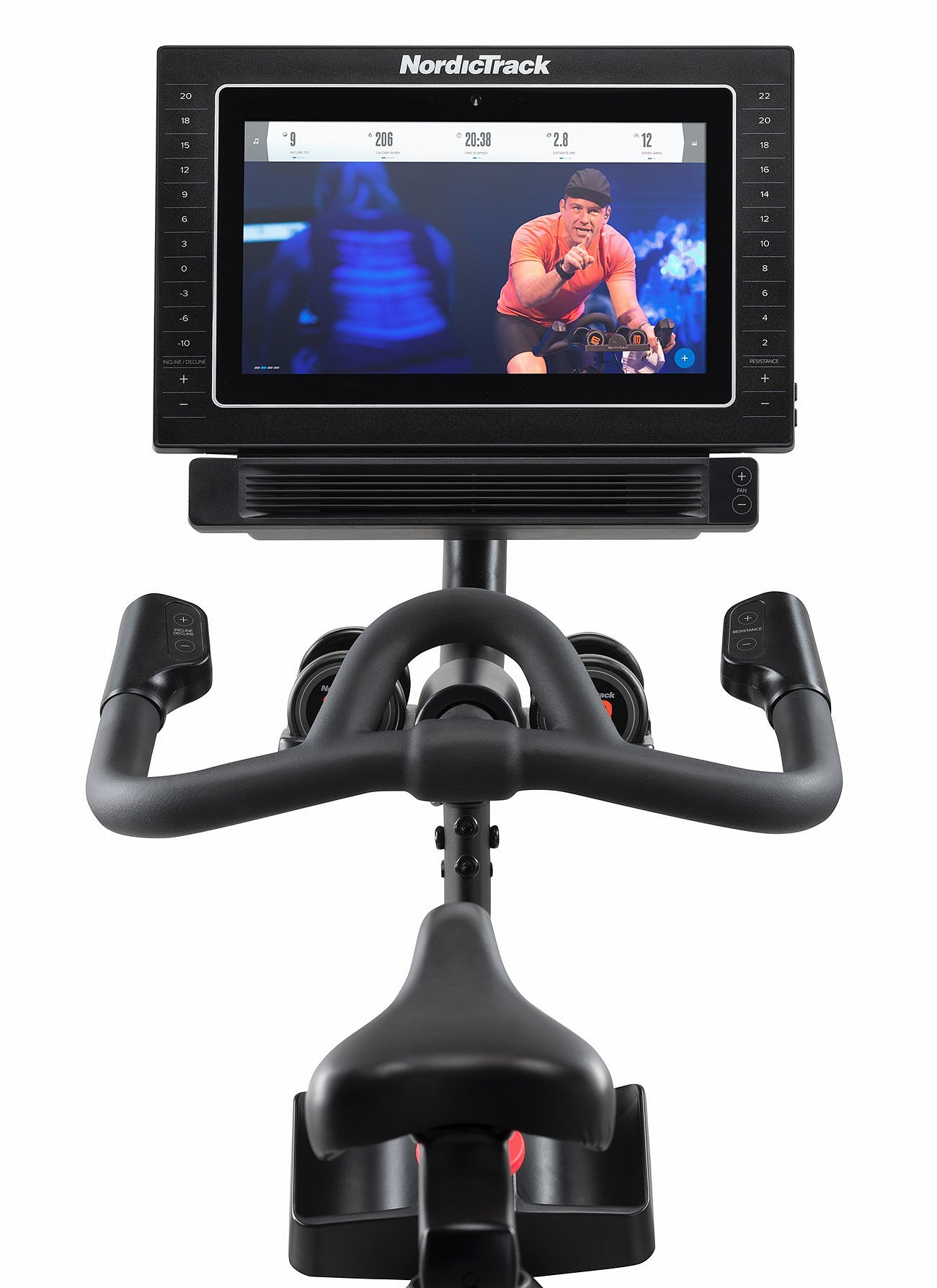 Gelové sedlo je ergonomicky tvarované a je jednoduše nastavitelné jak ve vertikální, tak i v horizontální poloze, včetně jeho sklonu. Protiskluzová řidítka jsou výškově i horizontálně nastavitelná a umožňují vícepolohový úchop. Pitný režim dodržíte i během jízdy, držáky na lahev jsou umístěné pod řidítky. Dalším bonusem trenažeru NordicTrack Commercial S15i jsou činky jednoručky, každá o hmotnosti 1 kg. Ani horní polovina těla tak nezůstane bez tréninku.