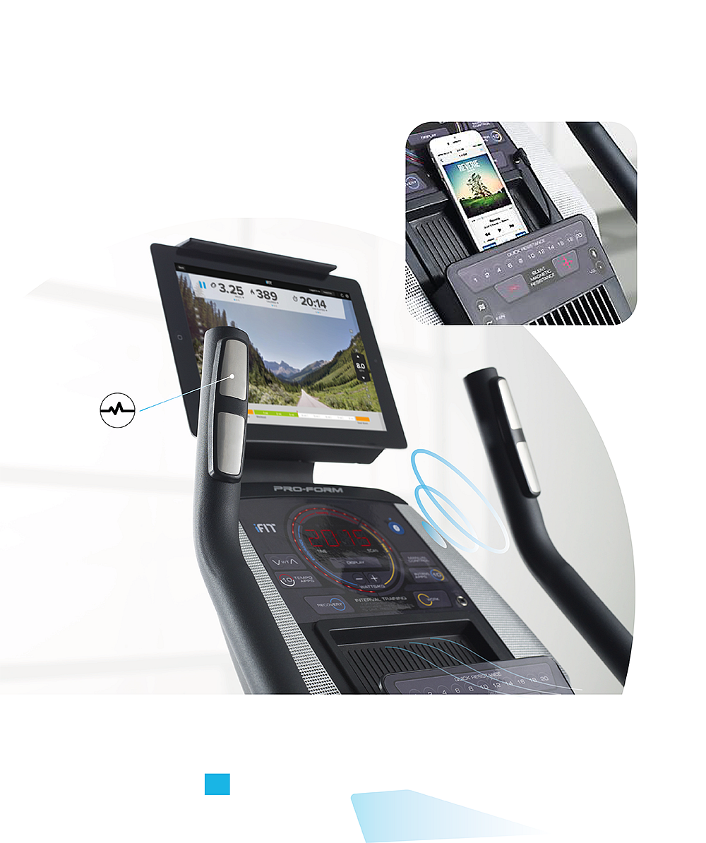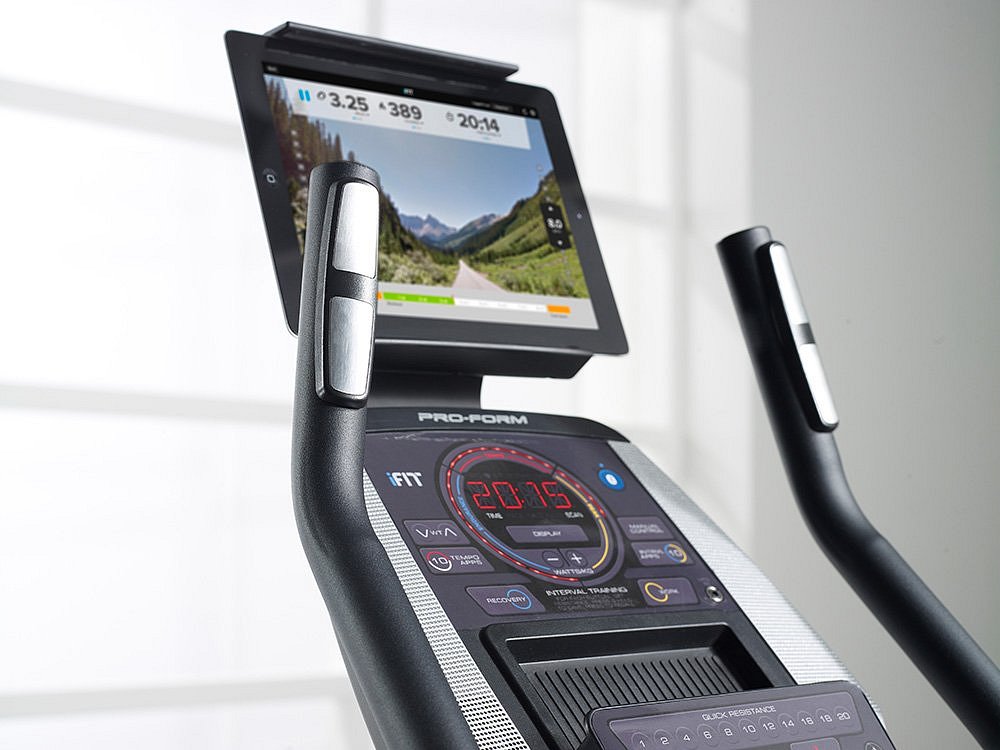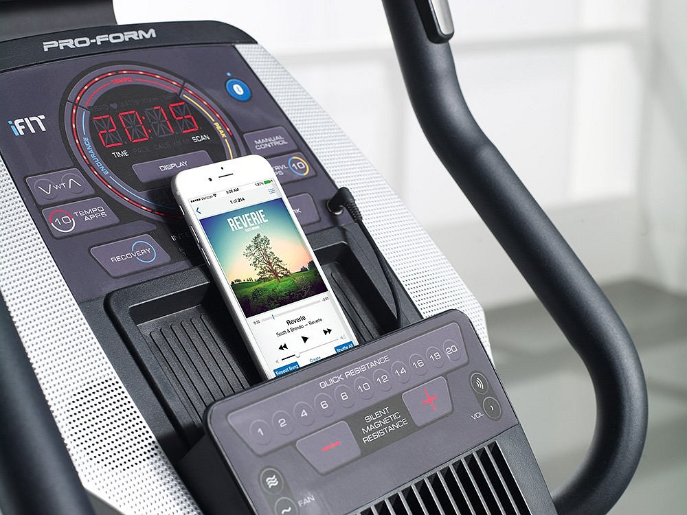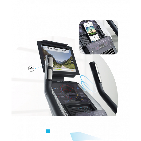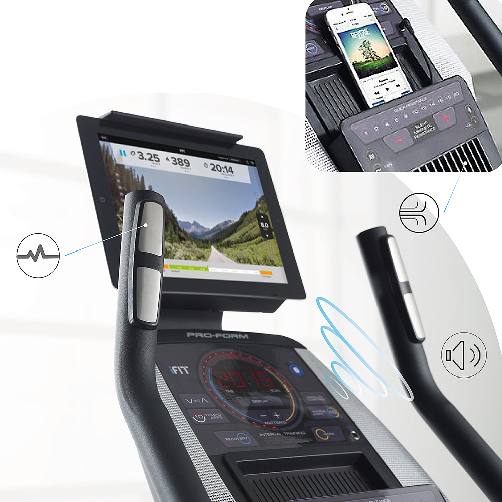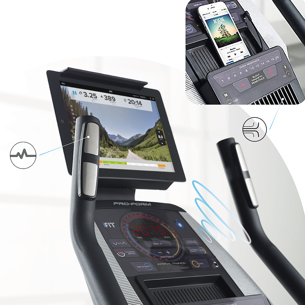 Computer rotopedu PRO-FORM 225 CSX disponuje držákem na tablet/smartphone, bluetooth přijímačem s možností připojení k iFIT aplikaci a CoolAire ventilátorem pro maximální osvěžení při tréninku.