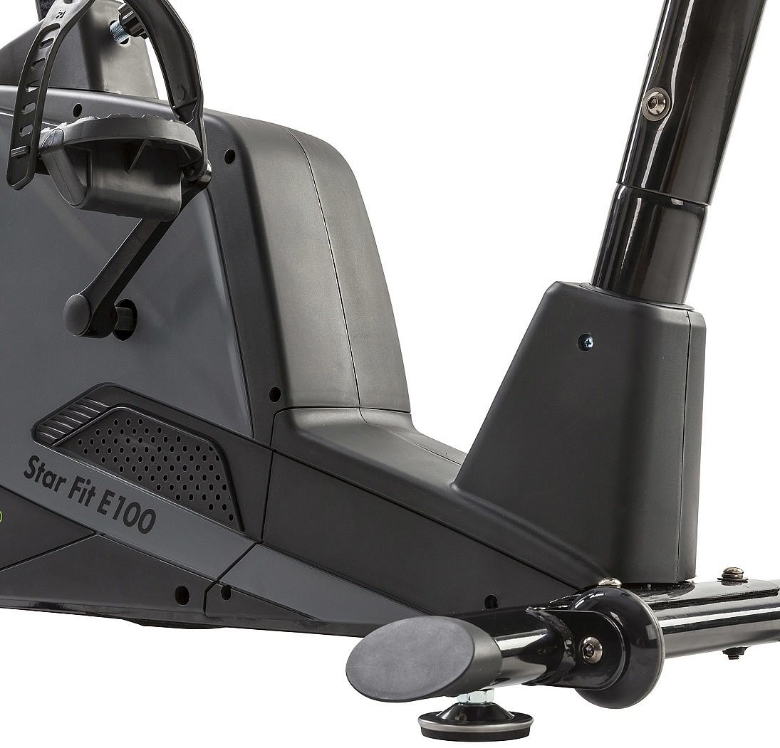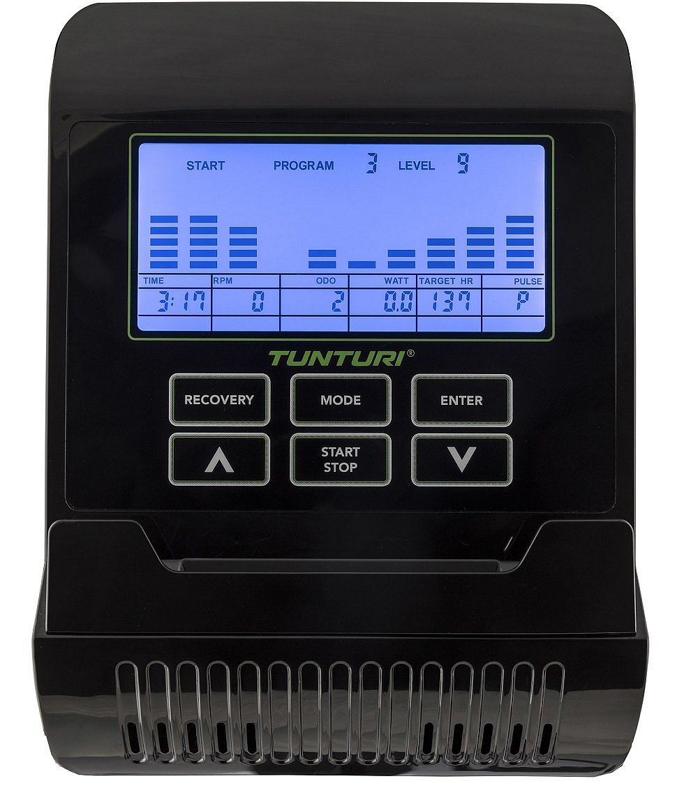 Tunturi Star Fit E100 disponuje počítačem s bohatou nabídkou programů a držákem na tablet. Dále je vybaven transportními kolečky pro snadnou manipulaci, vyrovnávači nerovnosti pro maximální stabilitu a držákem na lahev pro osvěžení při tréninku.