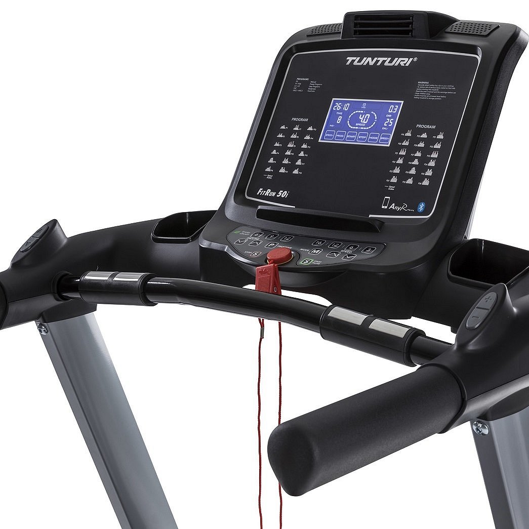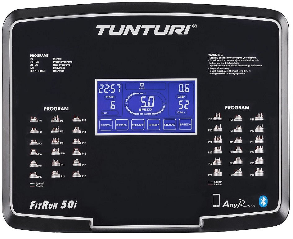 Součástí trenažéru Tunturi FitRun 50i je počítač s programy a Bluetooth zařízením, díky kterému se můžete připojit k aplikaci Anyrun apod. Dále je vybaven transportními kolečky pro snadnou manipulaci a vyrovnávači nerovnosti pro maximální stabilitu. Běžecký pás je možné složit do vertikální polohy.