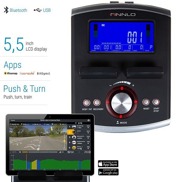 Možnost připojení k aplikaci Kinomap, BitGym, iConsole. Tréninkové aplikace jsou produktem třetí strany a neneseme odpovědnost za jejich funkčnost. Pokud byste měli samozřejmě jakýkoliv dotaz, rádi vám poradíme.