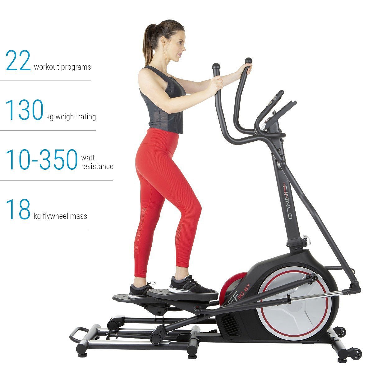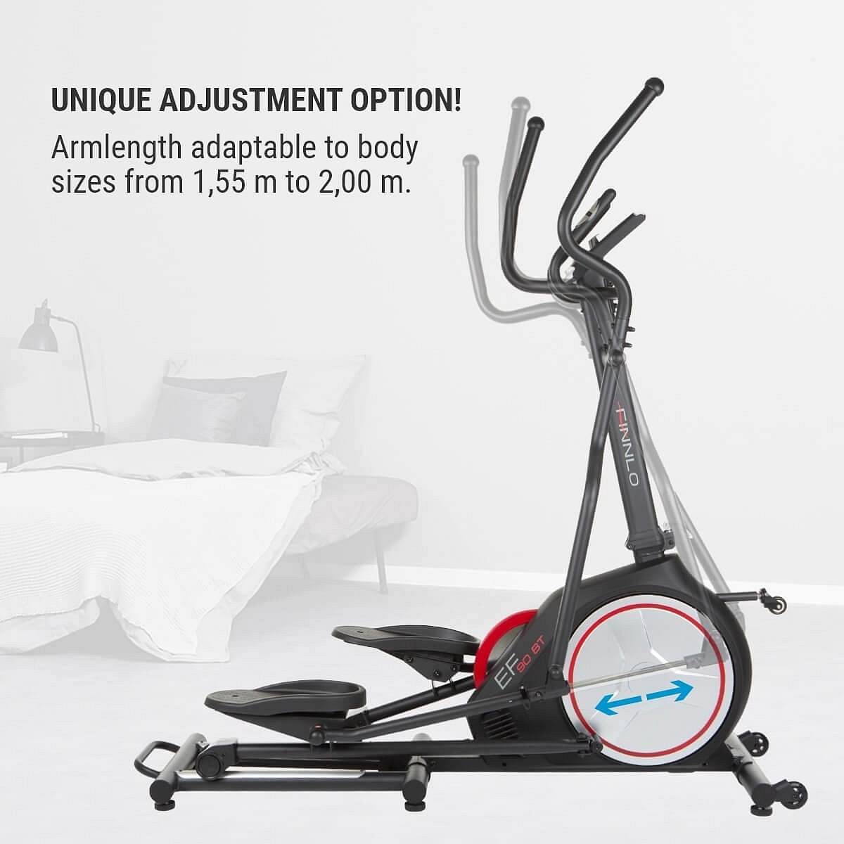 FINNLO CleverFold EF90 BT je domácí eliptický trenažér s promyšlenou konstrukcí, která umožňuje stroj složit. Rámová konstrukce s nosností 130 kg a vyvážený setrvačníkový systém o hmotnosti 18 kg zaručují dlouhodobě bezproblémové užívání stroje.