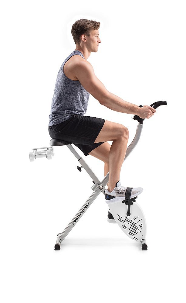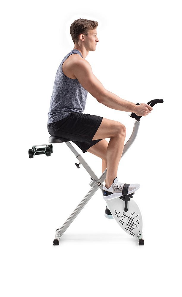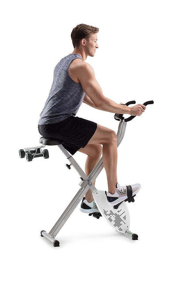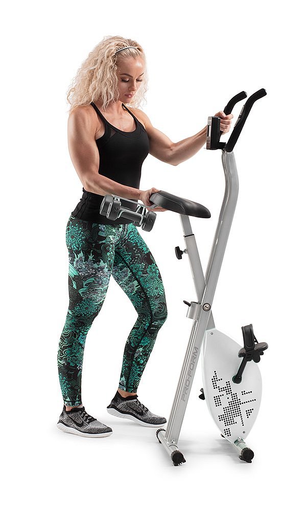 Rotoped PRO-FORM PF X-Bike vás jistě pohltí nejen svým moderním designem a příjemnou pořizovací cenou, ale i svým abnormálně malým nárokem na prostor. Milovníci sportu, kteří v domácí tělocvičně bojují s každým centimetrem navíc, okouzlí jeho blesková možnost složení. Patříte-li k populaci velkých, malých, tenkých či zavalitých je tento stroj s maximální nosností 115 kg a snadno nastavitelným sedlem určen právě pro vás. Magnetický brzdný systém s plynulou elektronickou regulací a perfektně vyvážený setrvačníkový systém o hmotnosti 3 kg zajištuje plynulý a tichý chod stoje.