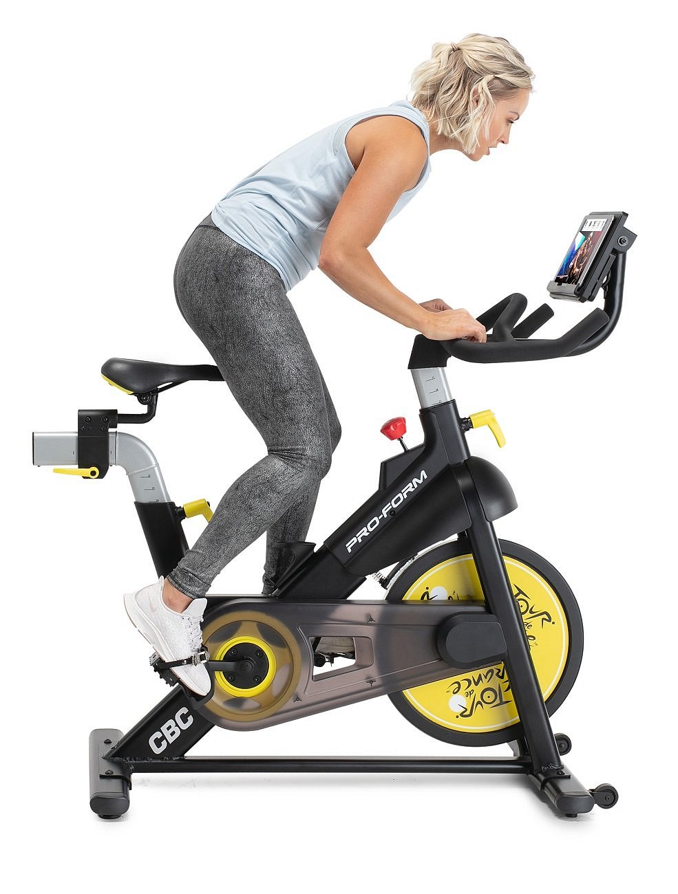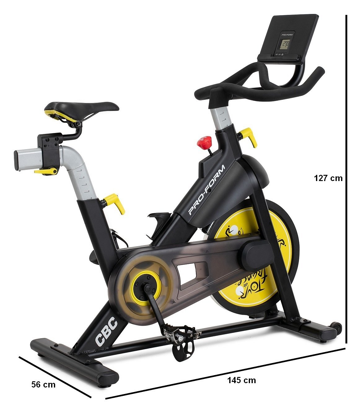 PRO-FORM cyklistický trenažér TDF CBC je špičkový stroj, který patří k oficiálním trenažérům závodu Tour de France. Stroje této řady jsou předurčené pro aktivní cyklistický trénink, tomu také odpovídá nejen mechanika trenažéru, ale i variabilita zátěže, která poskytuje 16 úrovní digitálně řízeného inteligentního odporu. Cyklotrenažér má těžký kalibrovaný setrvačník o hmotnosti 10 kg, ten zaručuje tichý a plynulý chod.