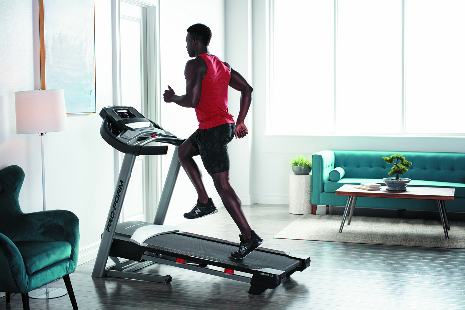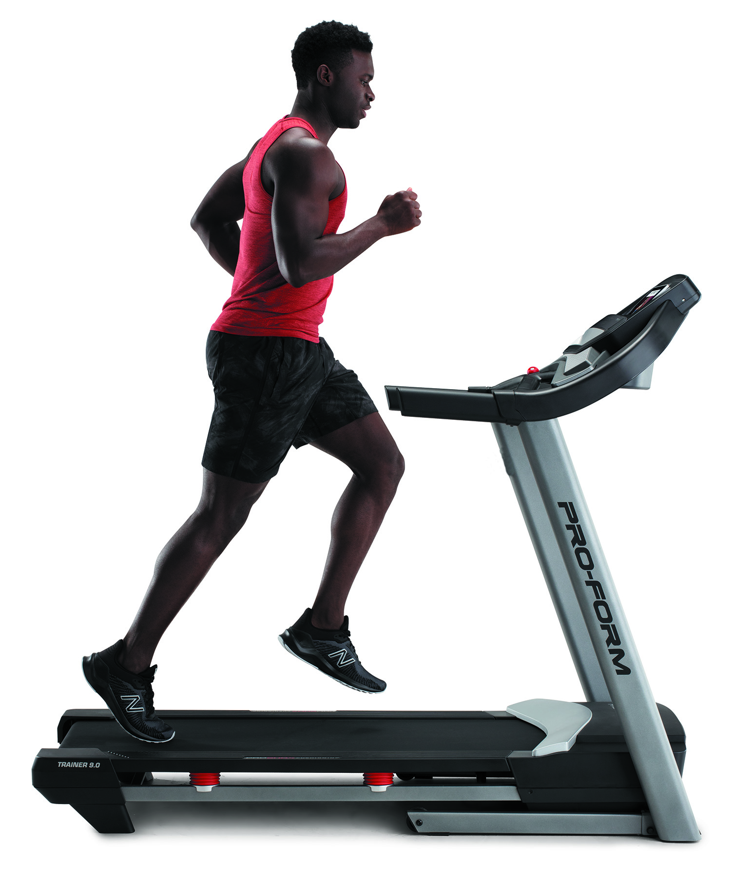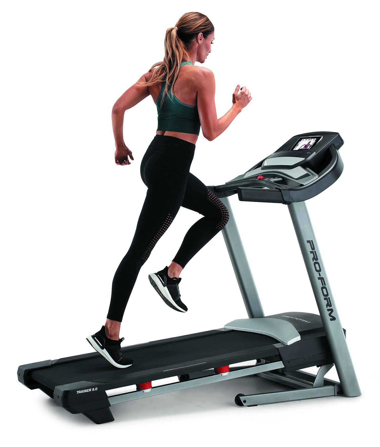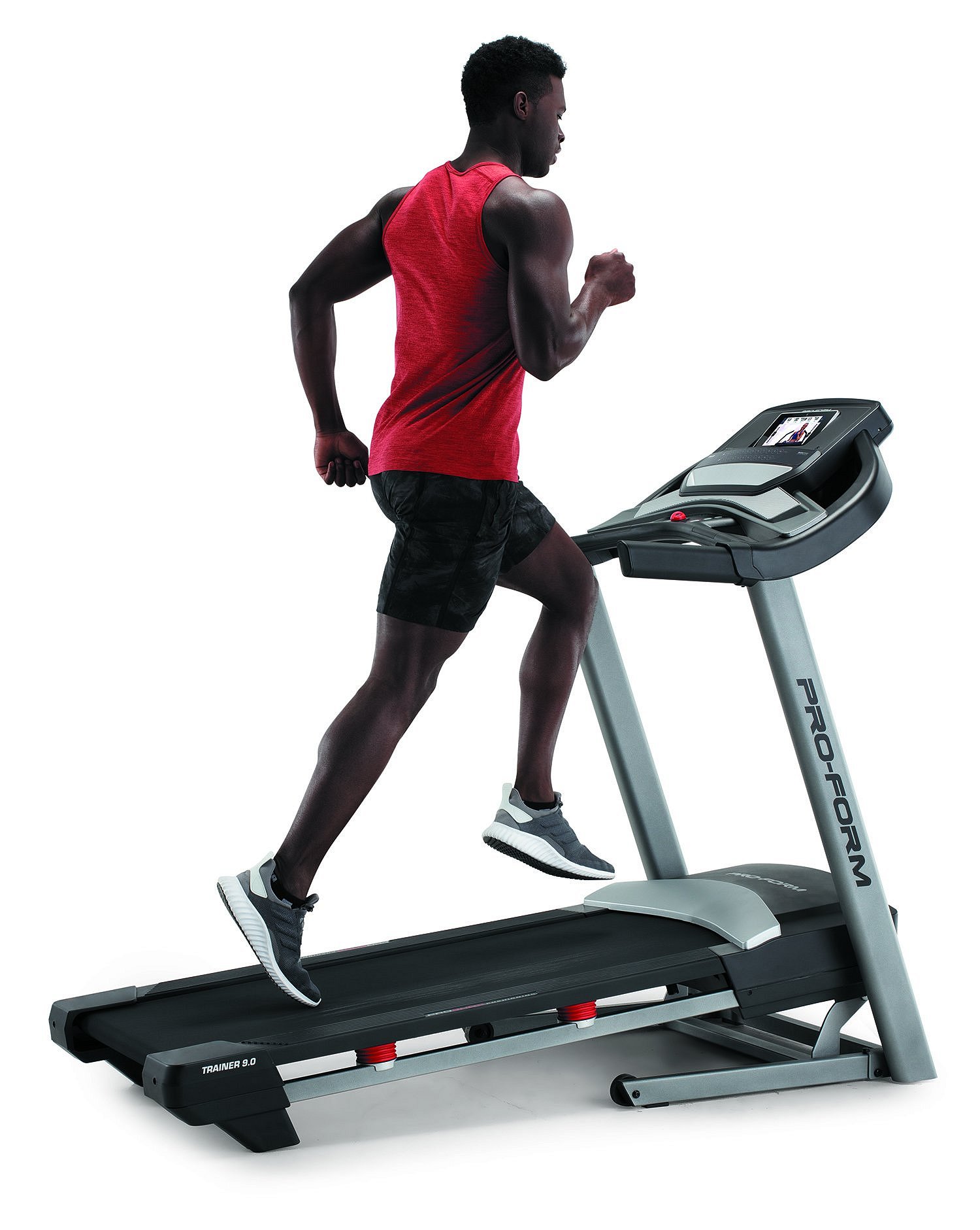 PRO-FORM Trainer 9.0 je běžecký trenažér pro domácí fitness. Bude vhodný pro pravidelný trénink začínajících sportovců, pokročilejších běžců, ale i pro vášnivé sportovce. Stroj poskytuje kombinaci kvalitní mechaniky a masivního rámu s nosností až do 135 kg váhy cvičence. Motor s trvalým výkonem 2,75 HP (2,05 kW), běžecká plocha o velikosti 46 x 127 cm, elektronicky nastavitelná rychlost do max 18 km/h stejně jako elektornicky regulovaný sklon v rozmezí do 10 %, nabídne každému maximální komfort při běhání. Rychlost i sklon plochy můžete nastavit už přednastavenými tlačítky na panelu PC.
