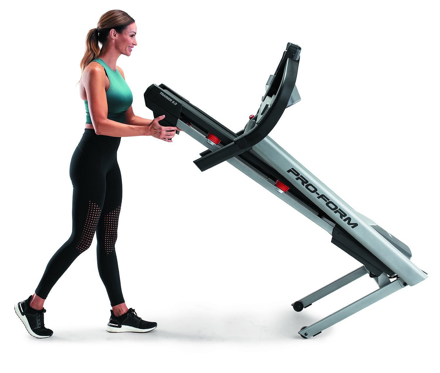 Model běžeckého pásu PRO-FORM Trainer 9.0 disponuje 2" reproduktory pro poslech hudby nebo mluveného slova a držáky na lahev s pitím. Sklopení do vertikální polohy se systémem "SpaceSaver® Design with EasyLift™ Assist" šetří místem pokud zrovna neběháte. Manipulace je velmi snadná. Ke snadnému přemísťování pomůžou transportní kolečka, která jsou také součástí stroje.