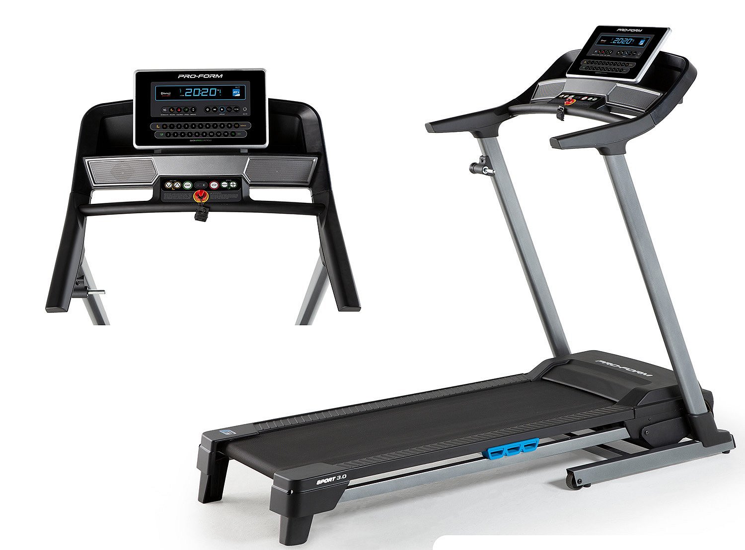 Počítač má 5" vysokokontrastní displej pro sledování běžných tréninkových hodnot a snadno se ovládá. Konzole počítače dále disponuje držákem na tablet a úchopovým madlem. Zobrazované parametry jsou: rychlost, čas, vzdálenost, spálené kalorie, tepová frekvence. Pro měření frekvence tepu je nutné si zakoupit kompatibilní Bluetooth hrudní pás, který provádí měření s přesnosti EKG. Hrudní pás je možné u nás samostatně dokoupit. Počítač nabízí celkem 16 přednastavěných cvičebných programů.