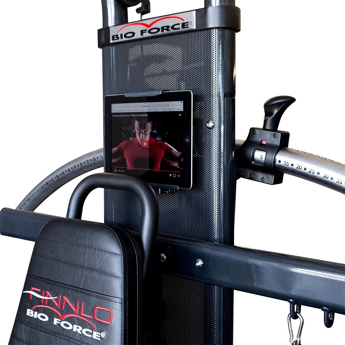 FINNLO Bioforce Extreme Core nabízí hojné množství cviků, k tomu mu dopomáhá důmyslný systém uchycení kladek a také sada adaptérů, kde ale ne všechny typy adaptérů jsou součástí základního balení. Součástí balení je velmi užitečný adaptér v podobě břišního lana, díky kterému můžete značně rozšířit vaši sadu cviků. Obrovskou výhodou posilovacího stroje FINNLO Bio Force EXTREME CORE je optimální ergonomie, kterou si každý na stroji přizpůsobíte tím, že můžete libovolně měnit trajektorii tahů.