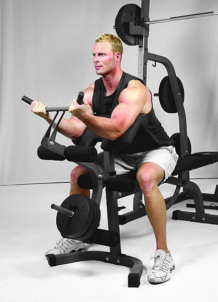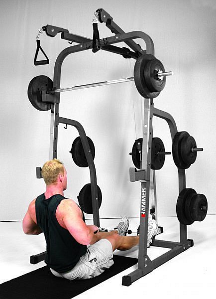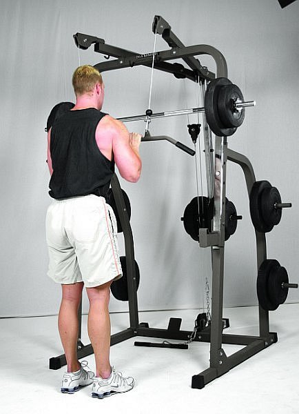 - Nastavitelná lavice pro cvičení Latissimus, tricepsu a pro usazení závaží (tyč ani závaží nejsou zahrnuty ve výbavě)