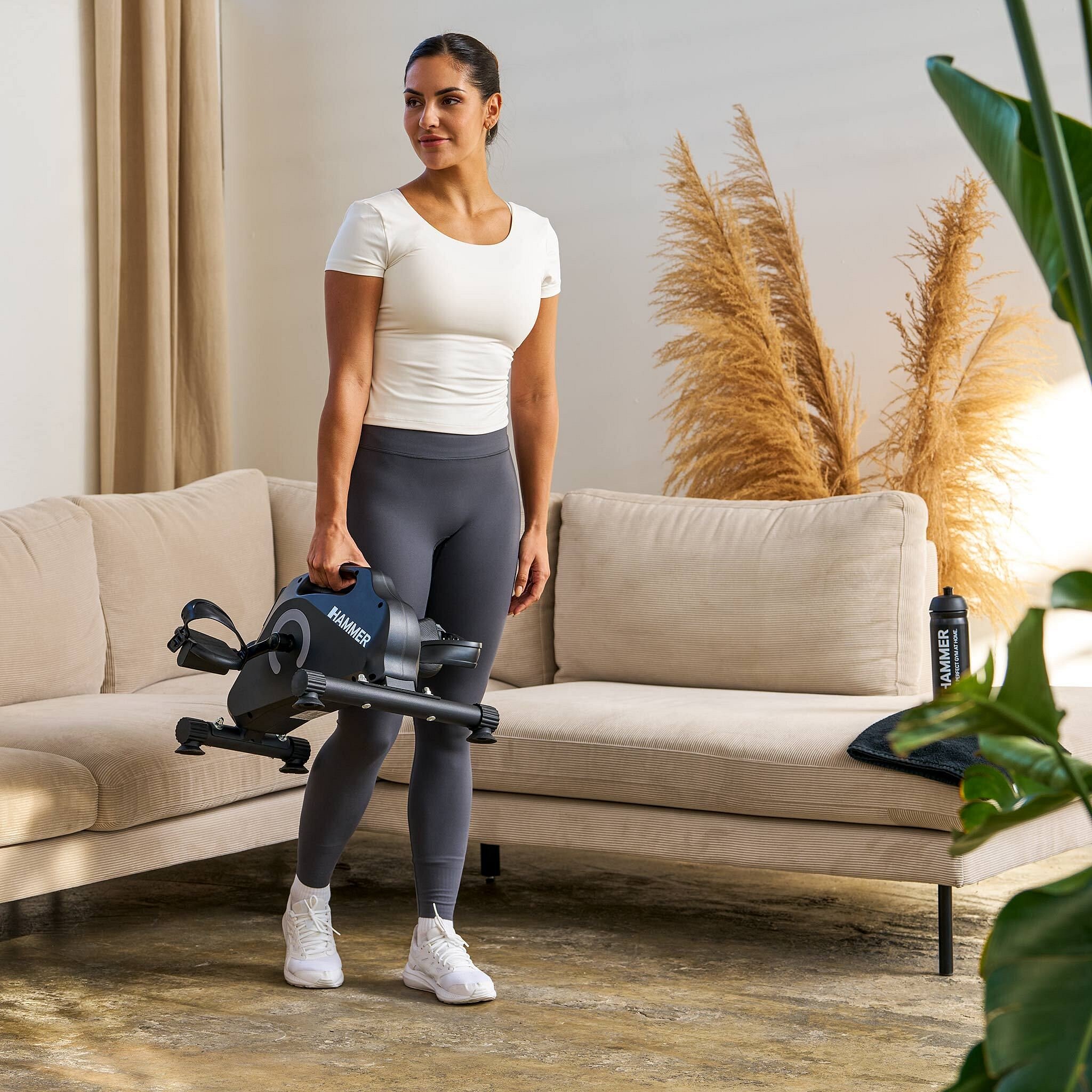 Minibike je dodáván s praktickým popruhem, který jej bezpečně drží na místě – už žádné klouzání! Protiskluzová podlahová podložka také poskytuje dodatečnou přilnavost a chrání podlahu před poškrábáním.Protiskluzové, ergonomicky tvarované pedály zajišťují optimální přilnavost a pohodlný trénink. Díky robustní konstrukci a nastavitelným popruhům na nohy zůstává vaše noha bezpečně na místě.