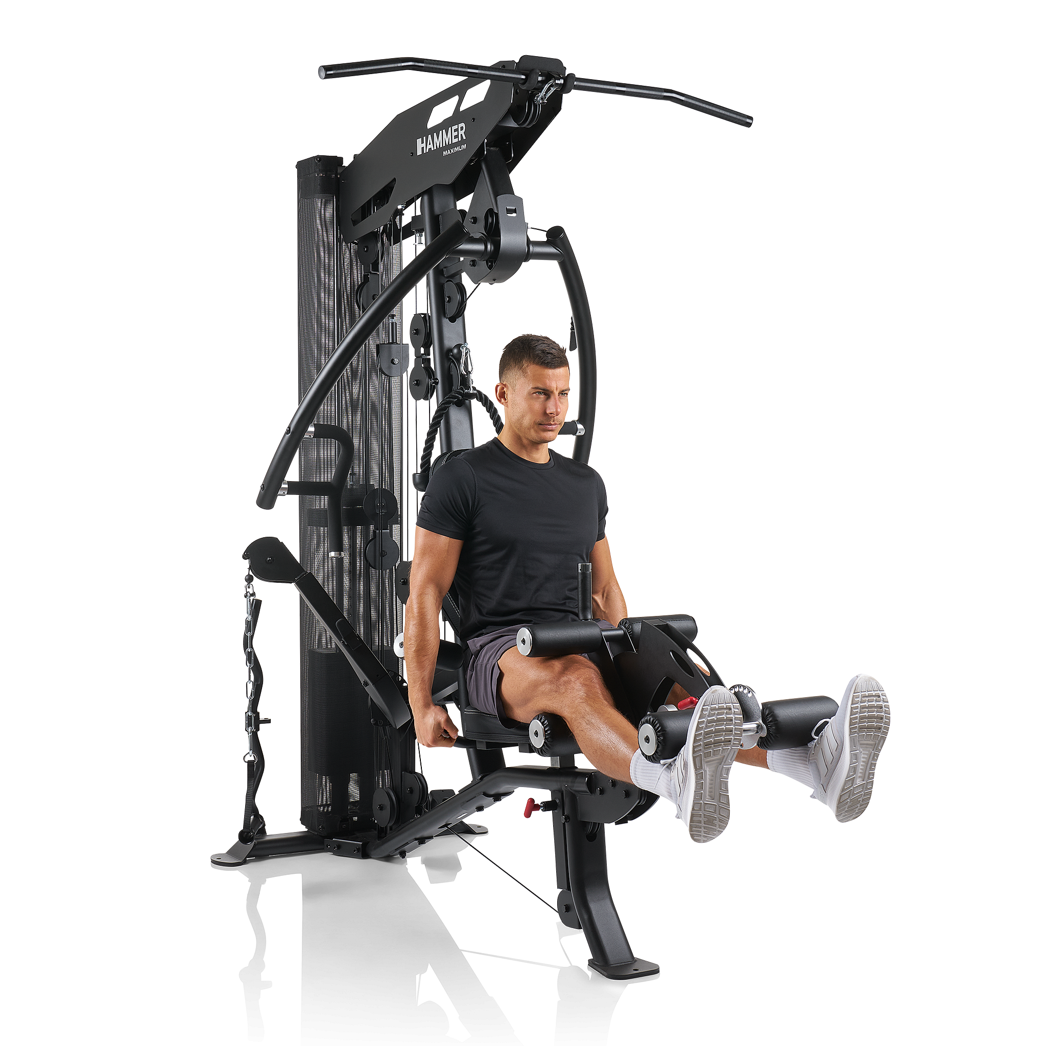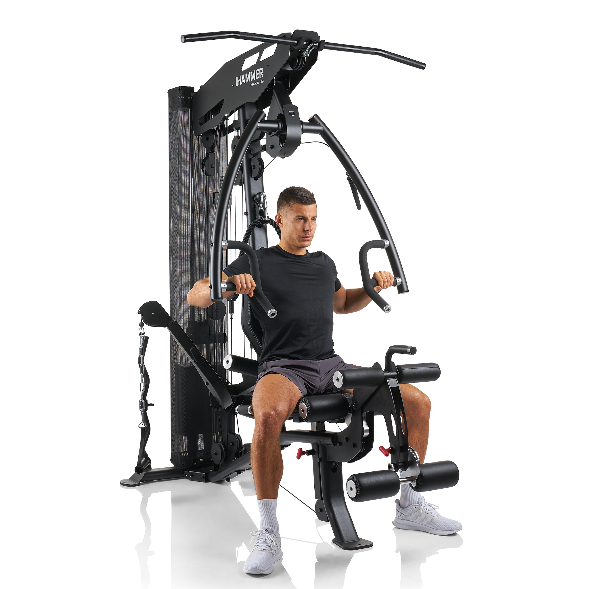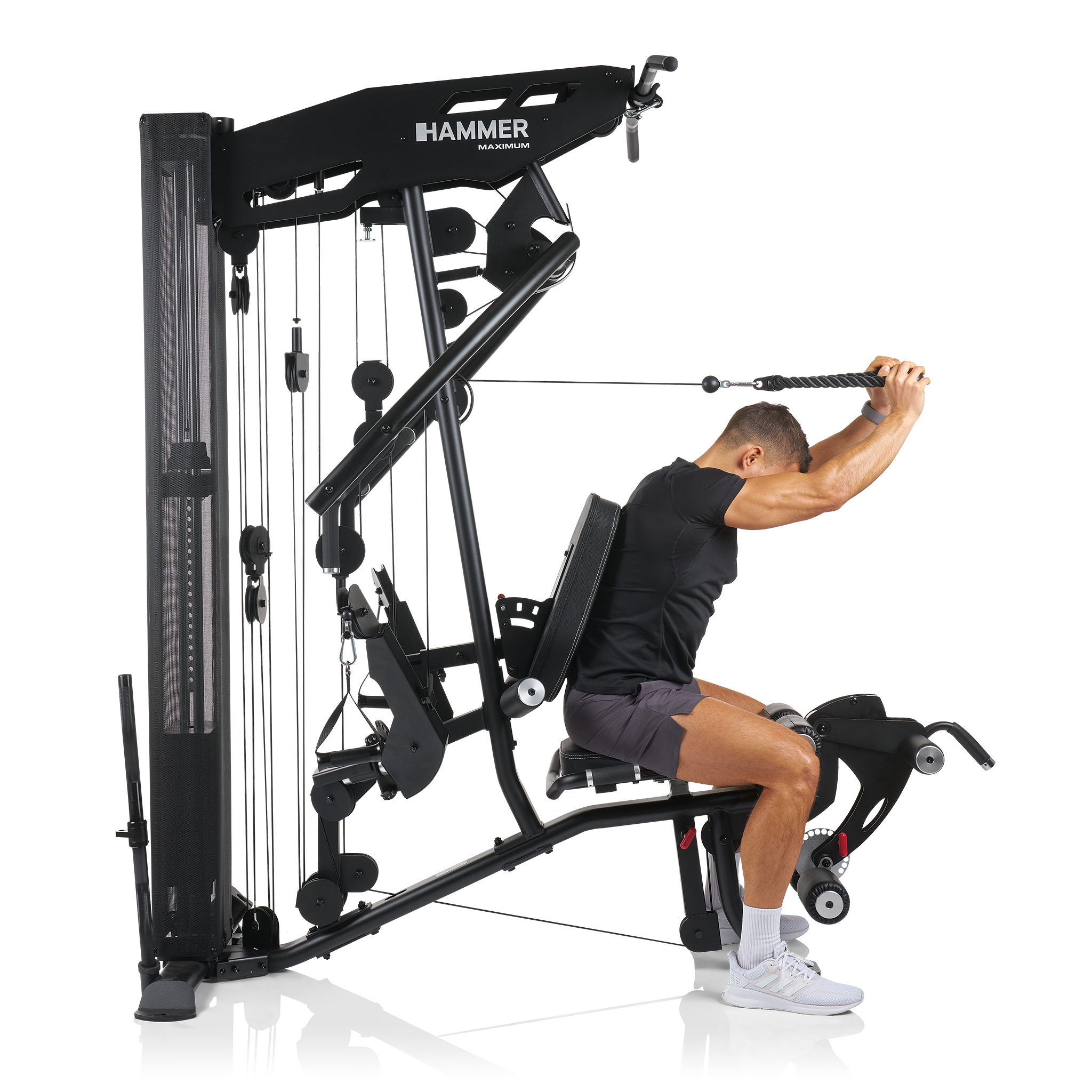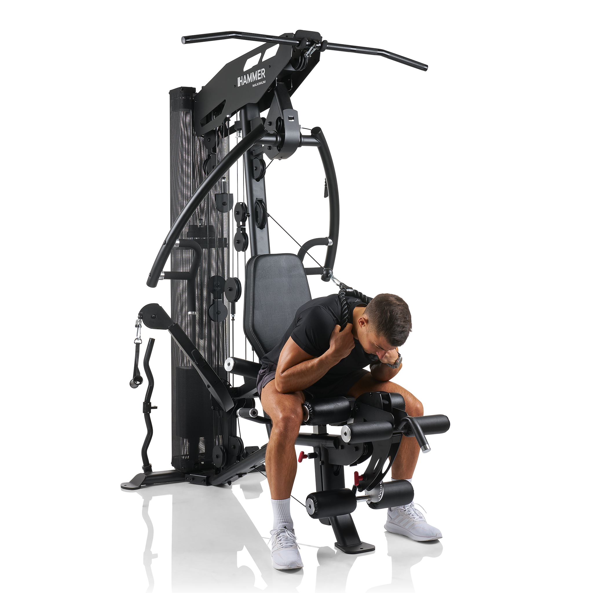Věž vyniká především individuálním nastavením pro každého uživatele, a to až do výšky 200 cm. Ergonomicky tvarované sedlo lze nastavit ve správné výšce jediným pohybem a opěradlo upravíte ve sklonu i výšce. Adaptér pro předkopávání/zakopávání je dokonce odnímatelný, což vám umožní sedět v mnohem pohodlnější poloze a lépe pracovat s ostatními cviky.