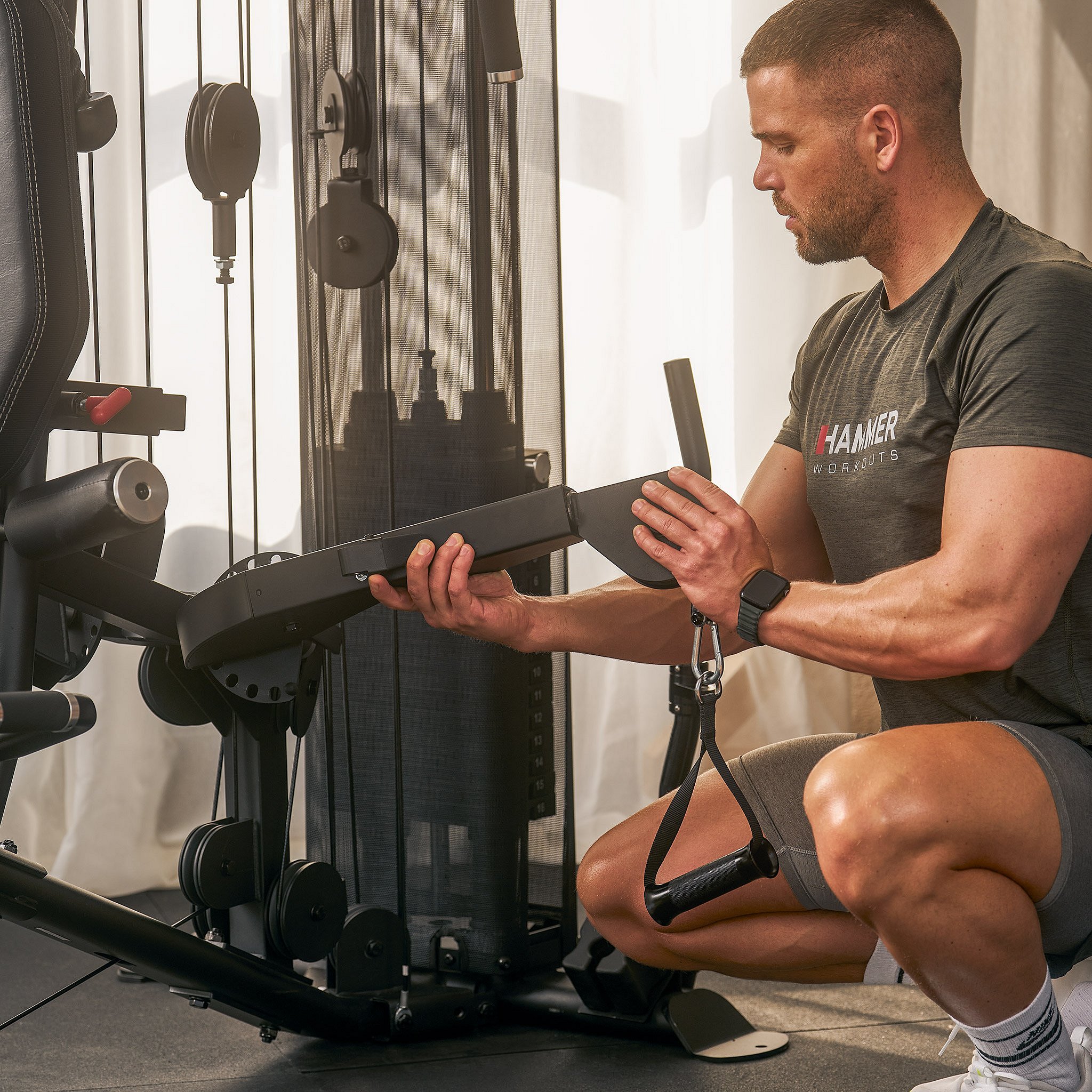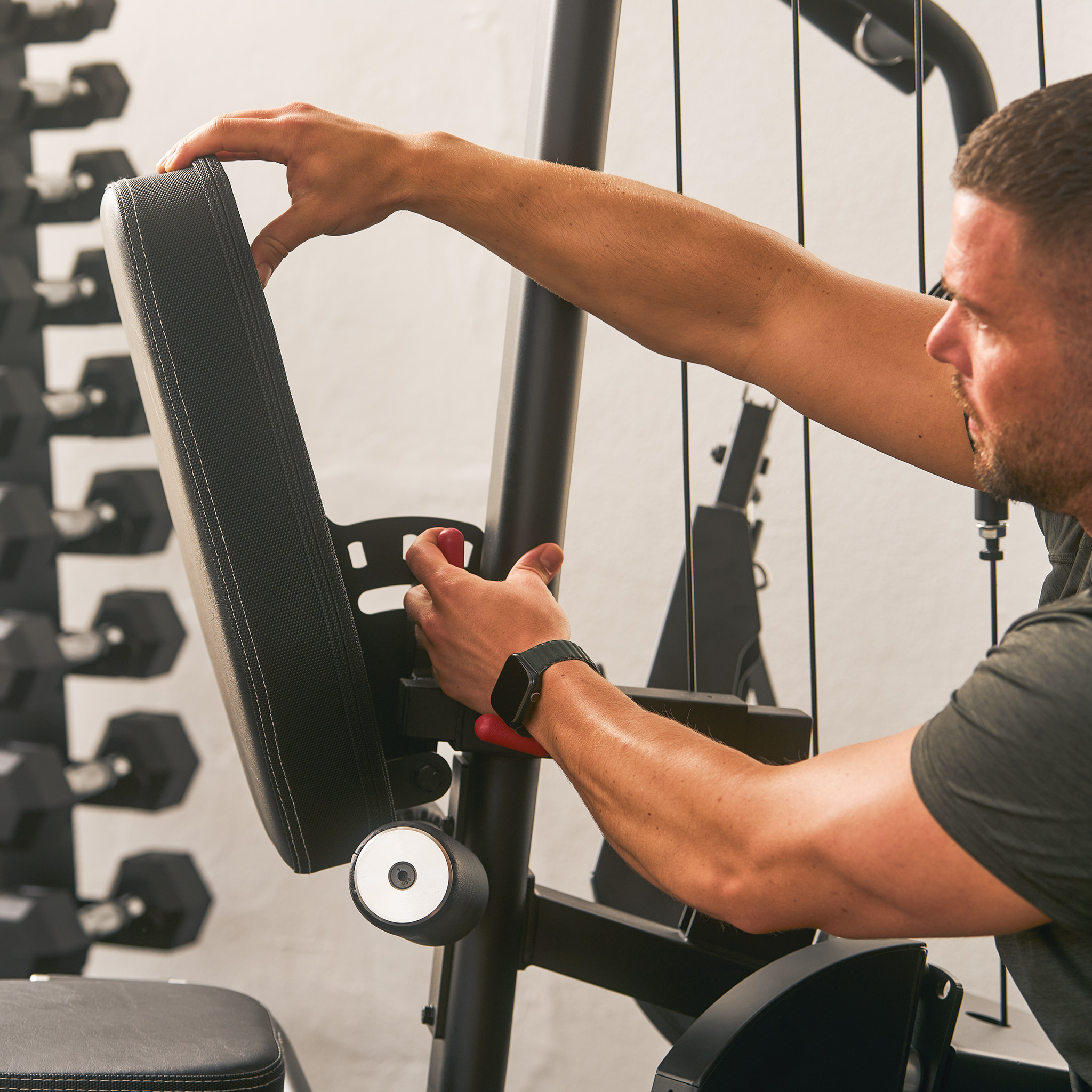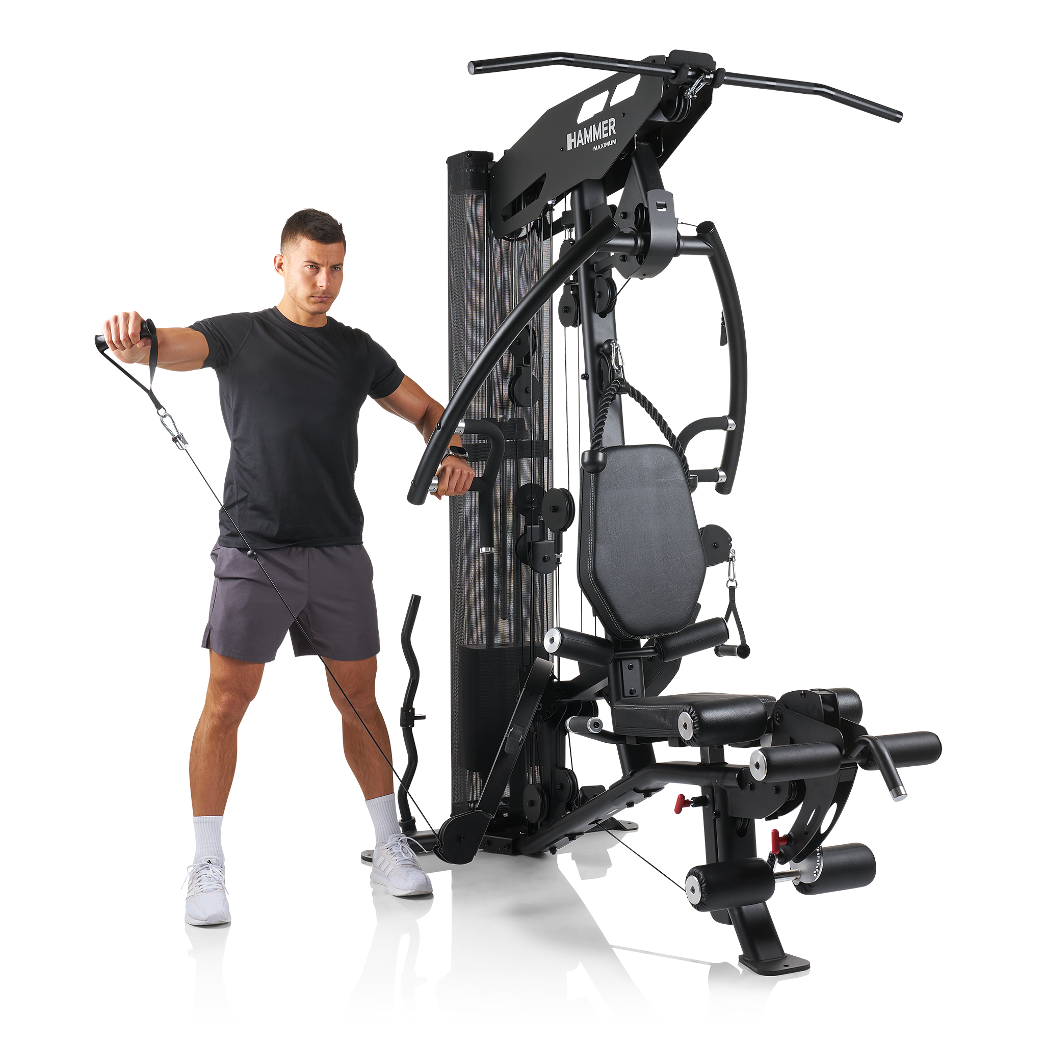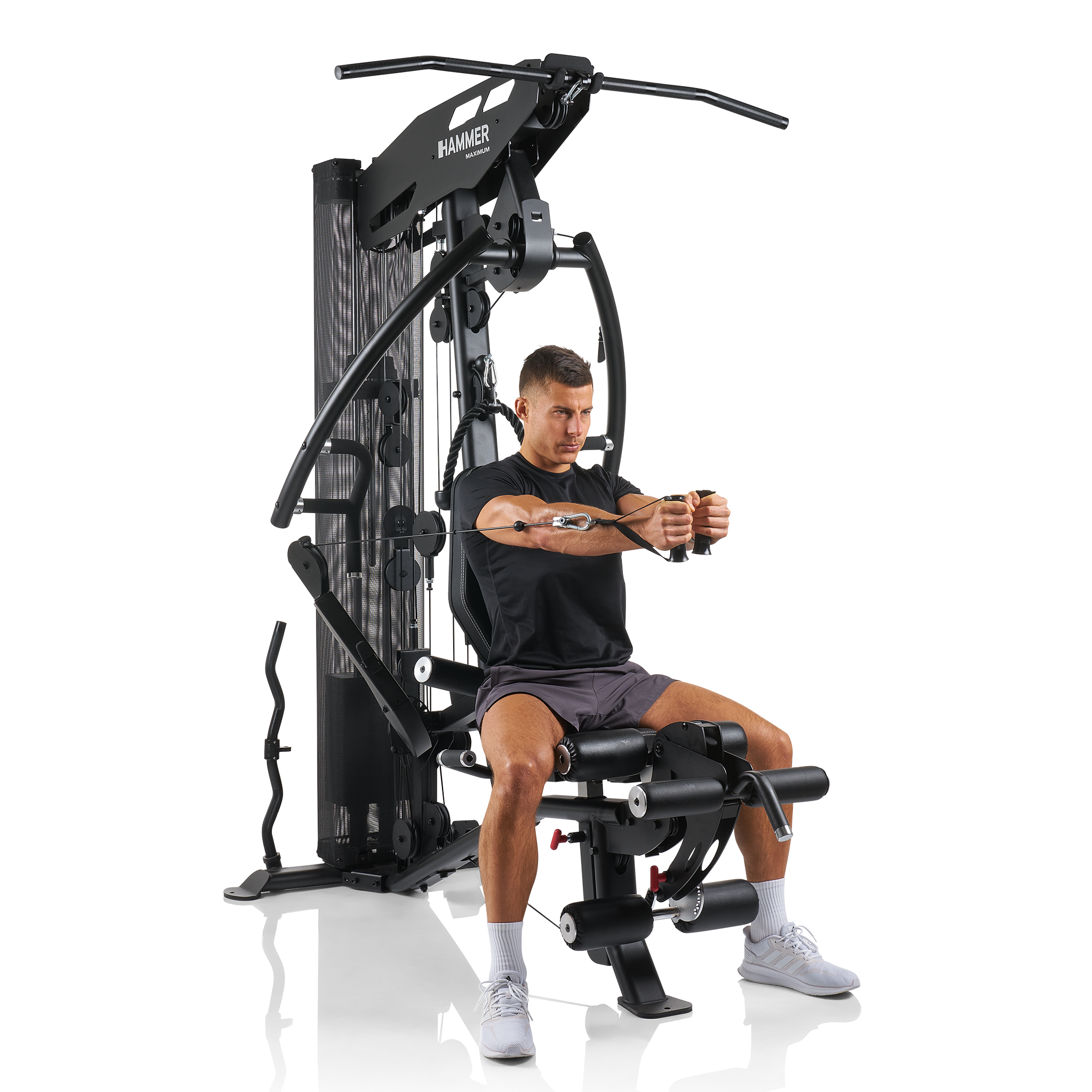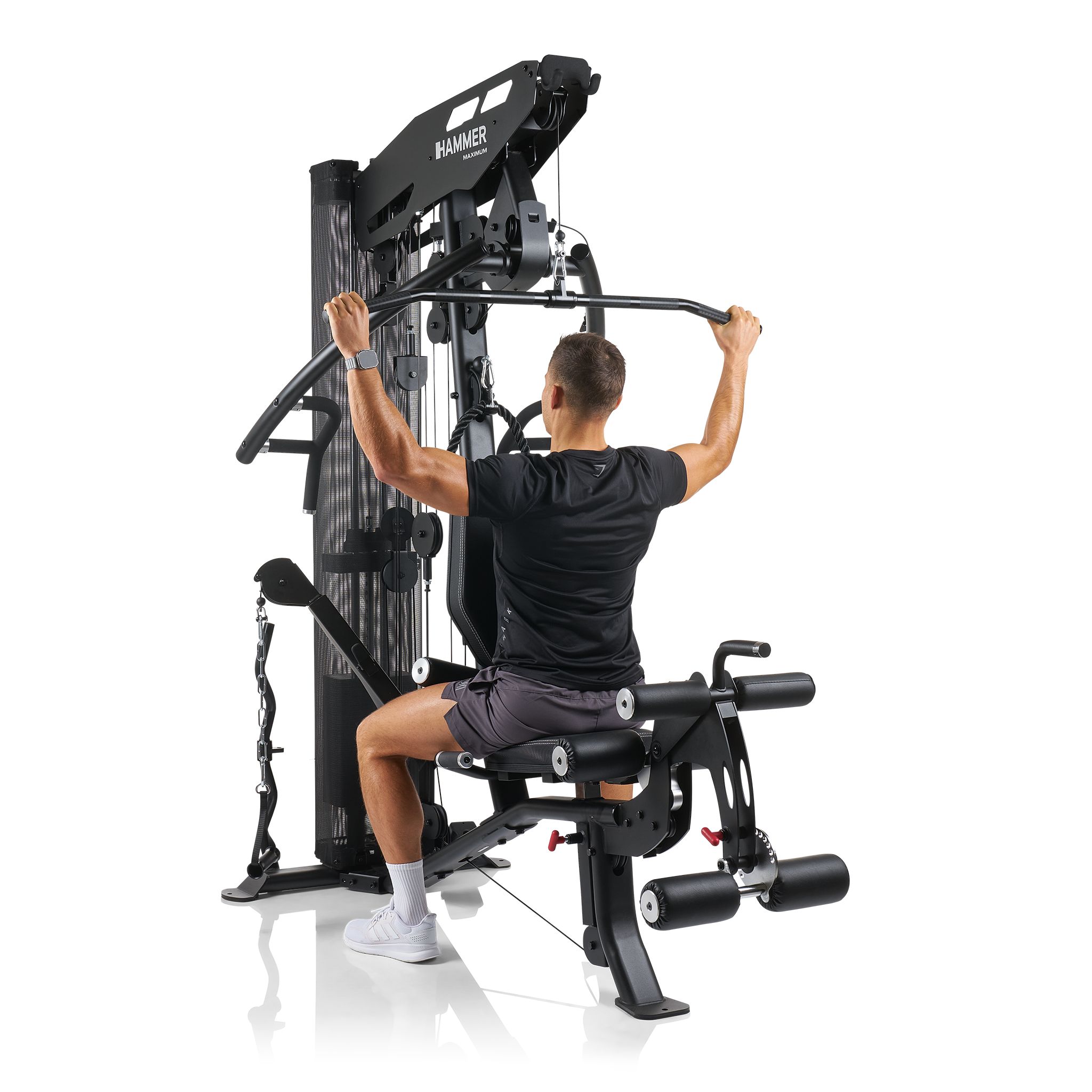 Věž vyniká především individuálním nastavením pro každého uživatele, a to až do výšky 200 cm. Ergonomicky tvarované sedlo lze nastavit ve správné výšce jediným pohybem a opěradlo upravíte ve sklonu i výšce. Adaptér pro předkopávání/zakopávání je dokonce odnímatelný, což vám umožní sedět v mnohem pohodlnější poloze a lépe pracovat s ostatními cviky.