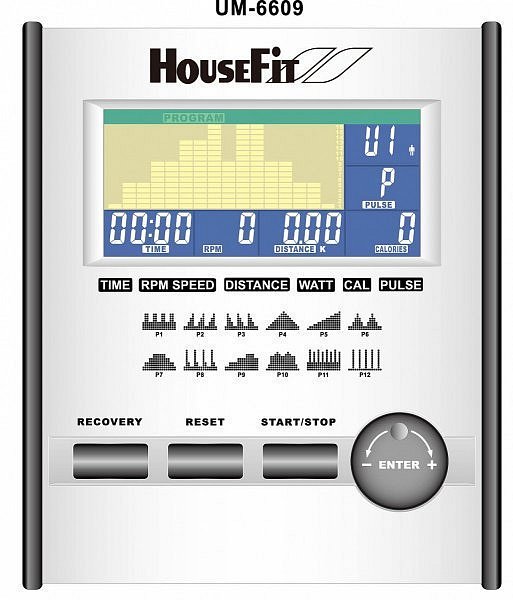Přehledný a snadno ovladatelný computer je vybaven podsvíceným barevným LCD monitorem. Umožňuje režim manuální ( tlačítky + a - nastavuje zátěž ručně ), profilový trénink ( ergometr dle zvolené tratě mění sám zátěž průběhu jízdy se zobrazením vaší polohy a tratě ). Dále má i program řízený tepem ( H.R.C.), při němž automaticky koriguje zátěž dle aktuální tepové frekvence a udržuje vás tak v optimální tepové zóně. To je ideální při spalování tuků. Pro tuto funkci je zásadní, že počítač umí komunikovat s hrudním pásem, tím je zaručen komfort a přesnost měření. Počítač je také vybaven systémem RECOVERY, který umí vyhodnotit v tzv. zklidňovací fázi po cvičení váš fyzický stav, měřený v závislosti na rychlosti poklesu tepové frekvence bezprostředně po dokončení tréninku.