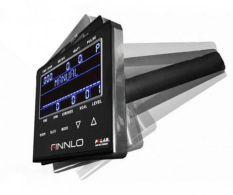 FINNLO AQUON PRO PLUS má invertní LCD displej a měřené údaje jsou: čas, kalorická spotřeba, tepová frekvence, vzdálenost, počet záběrů, záběry/min., čas na ujetí 500m, watty, nastavení horní hranice tepové frekvence, která se měří prostřednictvím hrudního pásu s přesností EKG, hrudní pás není součástí dodávky, ale je možné jej dokoupit (kompatibilní s POLAR apod. na frekvenci 5 kHz). Z programové nabídky je k dispozici celkově 17 programu a z toho 12 přednastavených profilů tratí, 1 uživatelský a 4 HRC programy, které jsou řízeny podle vaši tepové frekvence. Kromě programové nabídky jsou taky k dispozici režimy jako: manuál (count up, count down), režim RACE - jde o závod, kde si nastavíte požadované tempo záběrů a délku tratě a můžete tak změřit své síly s virtuální lodí. Paměť je pro 4 uživatele (pohlaví, věk, váhy, výška ..)