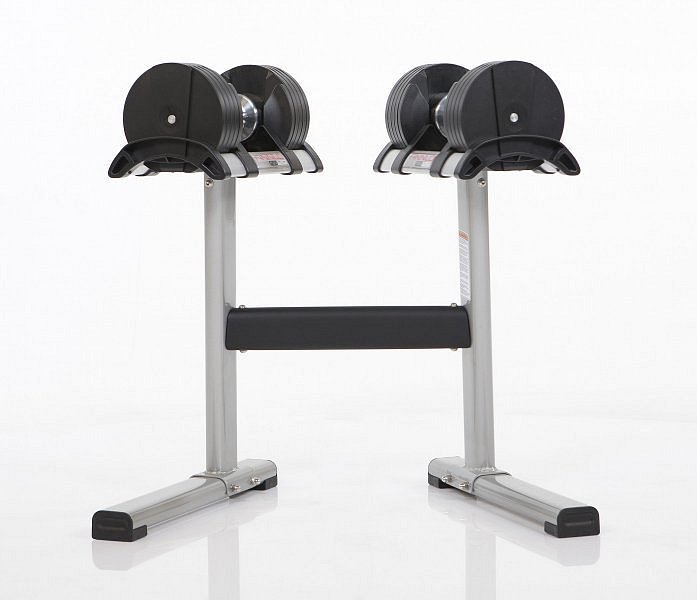 Požadovaná zátěž se jednoduše nastaví pomocí "jezdců" a přebytečné kotoučky zůstanou v zásobníku. Odpadá problém s povalováním se kotoučů všemožně po podlaze a urychlí se změna zátěže, což je vhodné třeba při ubíraných sériích, nebo při cvičení s tréninkovým partnerem používajícím jinou váhu.